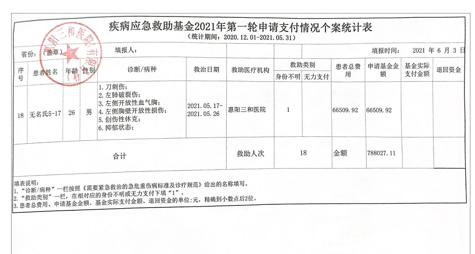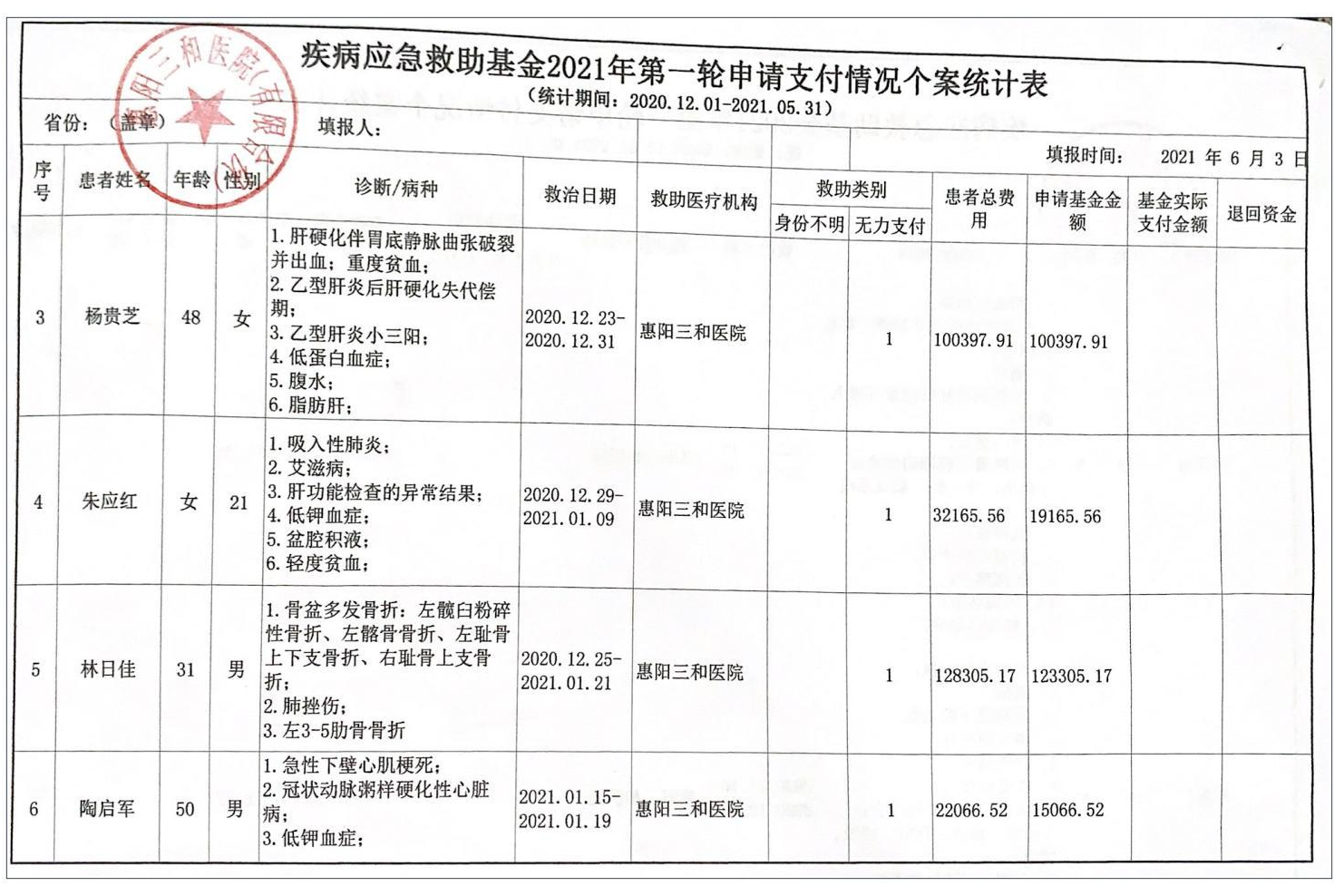 2020.12.01-2021.05.31疾病应急救助基金2021年第一轮申请支付情况个案统计表