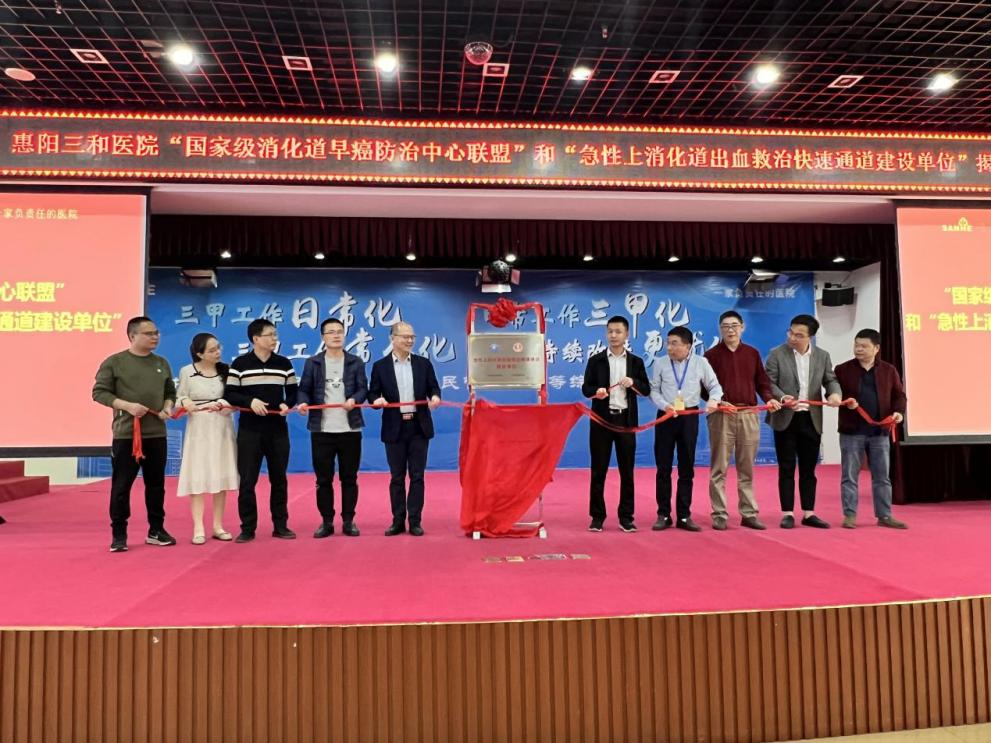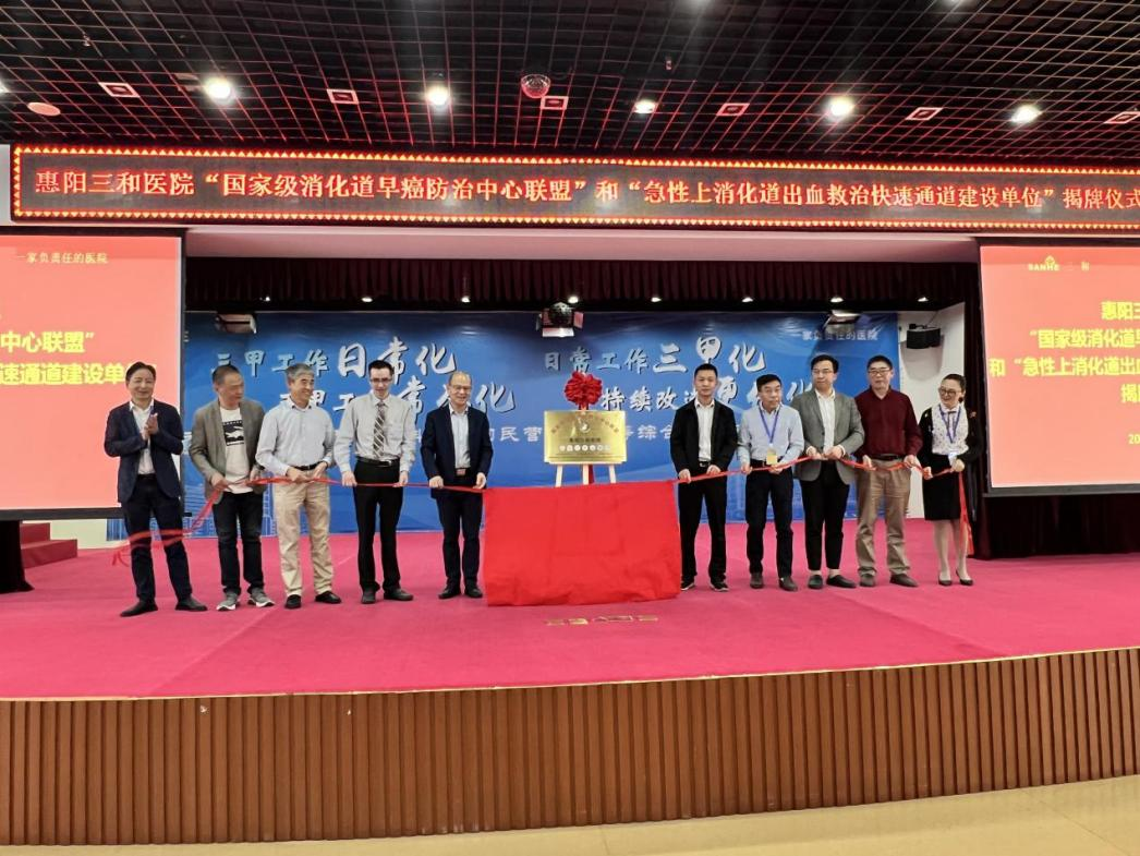 emc体育官方网站院长徐显林介绍,今天揭牌的两个牌匾意义重大,一个致力于消化道早癌防治,一个致力于急性上消化道危急重症的及时救治。“这两块牌匾挂于医院健康管理中心,目的在于加大对高危人群的早期筛查力度。”他说,尽可能提早发现早期肿瘤,推进医院消化道肿瘤筛查、早诊、早治,以及急性上消化道出血救治体系的进一步完善,更好地为惠阳及周边群众的胃肠健康服务,为健康惠州、健康惠阳作出应有的贡献。