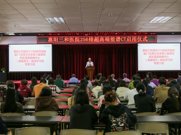 惠州市医师协会会长李慧诚现场致辞,对emc体育官方网站率先在惠州市第二家引进256排超高端能谱CT表示赞许,并对医院在高端设备下的技术和团队发展寄予厚望。