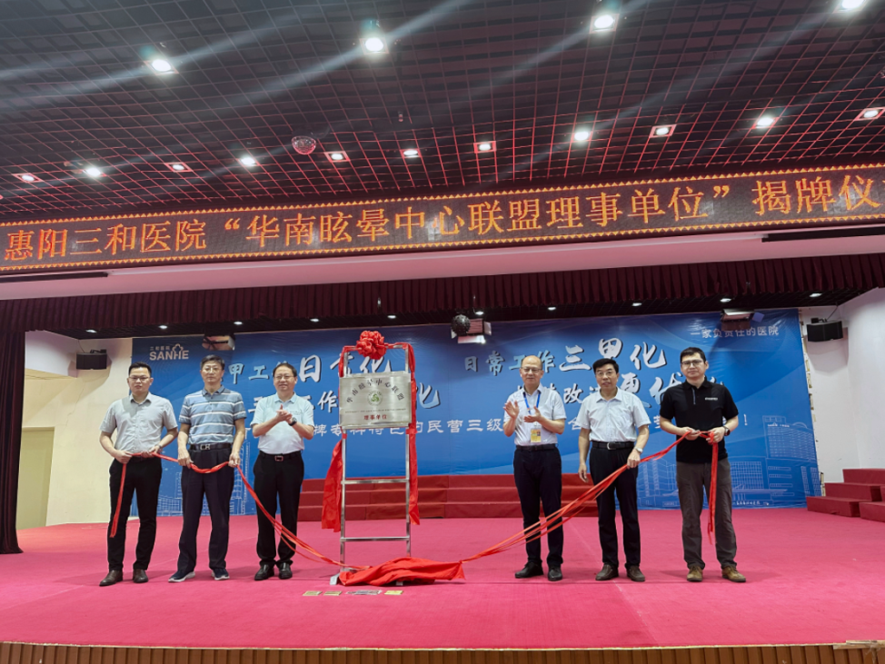揭牌仪式上,华南眩晕中心联盟执行主席——中山大学附属第一医院东院执行院长、眩晕中心主任黄海威教授及其团队10余位专家、emc体育官方网站徐显林院长及相关院领导、科室负责人等参加了揭牌仪式。